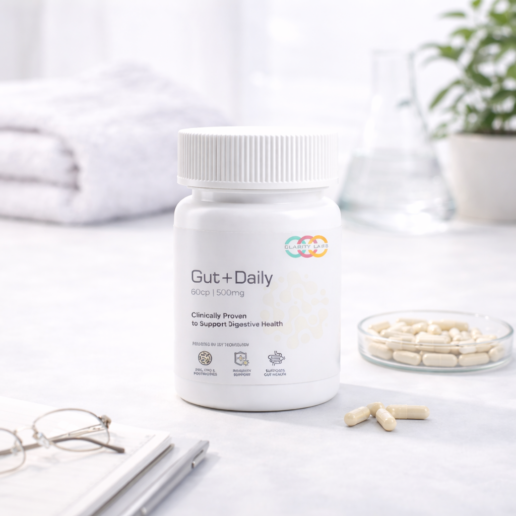Gut+ Daily is a science-inspired daily gut support supplement designed to support digestive comfort, gut balance, and everyday resilience — especially for modern, fast-paced lifestyles.